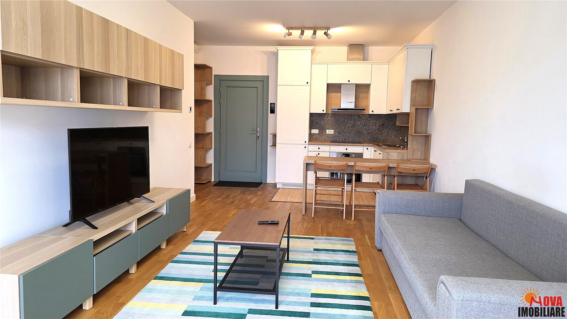 Proprietatea se remarca prin imbunatatiri premium si finisaje de calitate superioara . Apartamentul se inchiriaza complet mobilat si utilat, mobilier minimalist, modern, atent ales pentru un ambient sofisticat.
